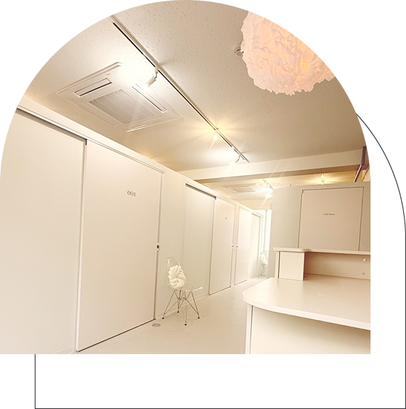 施術スペースは全部屋鍵付き完全個室!荷物を持ち帰る必要なし。個室内のレイアウトはもちろん自由!お好きな家具や小物をおいて自分だけの空間をつくりましょう。扉をひらけばそこは「あなただけのサロン」です。